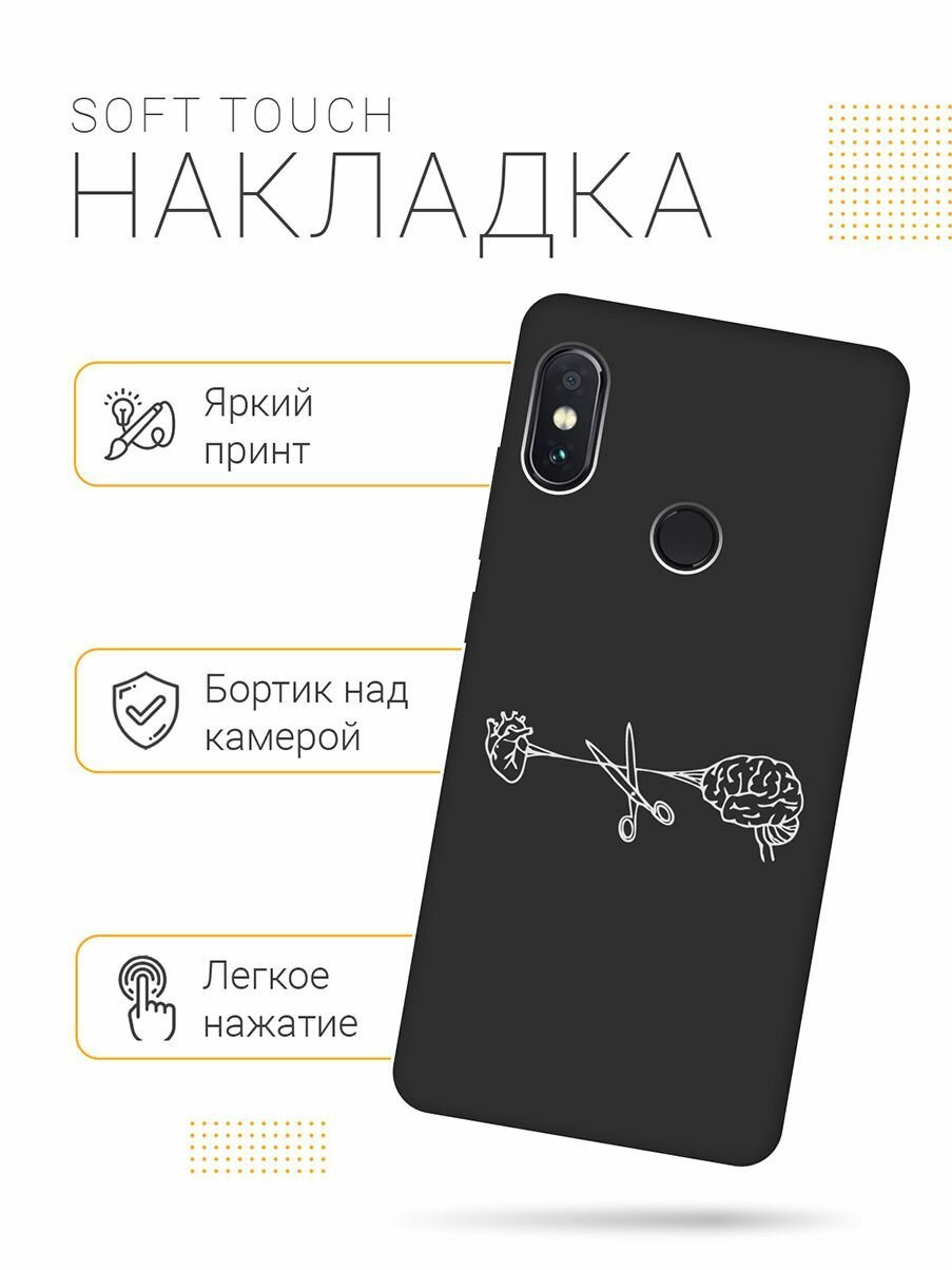 Матовый Soft Touch силиконовый чехол на Xiaomi Redmi Note 5, Note 5 Pro, Сяоми Редми Ноут 5, Ноут 5 Про с 3D принтом "Brain Plus Heart W" черный 513 ₽