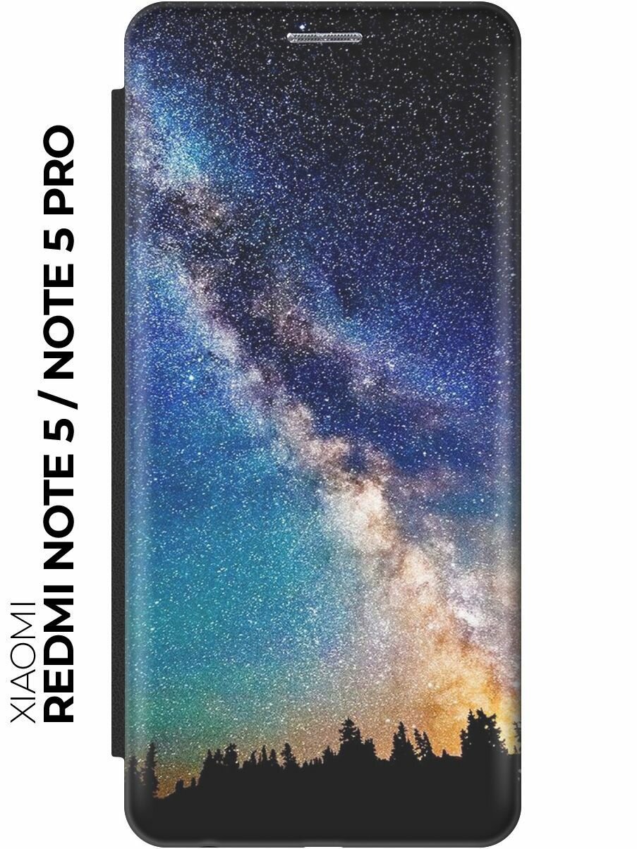 Чехол-книжка Лес и звезды на Xiaomi Redmi Note 5 / Note 5 Pro / Сяоми Редми Ноут 5 / Ноут 5 Про черный информация: