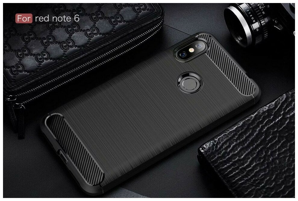 Отзывы на Накладка силиконовая для Xiaomi Redmi Note 6 Pro под карбон и сталь черная