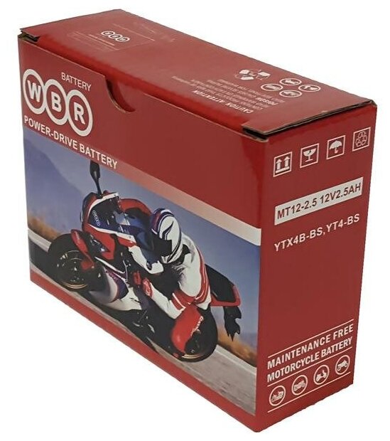 Отзывы на Аккумулятор WBR MT 12-2.5 для мототехники (12В, 2.5Ач / 12V, 2.5Ah / стартерный ток 40А) YT4B-BS