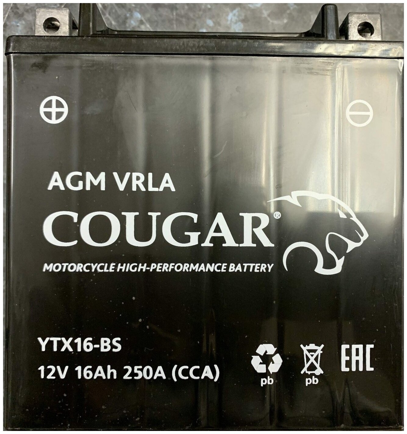 Отзывы на Аккумулятор мотоциклетный COUGAR AGM VRLA 12V16 YTX16-BS 150x86x161