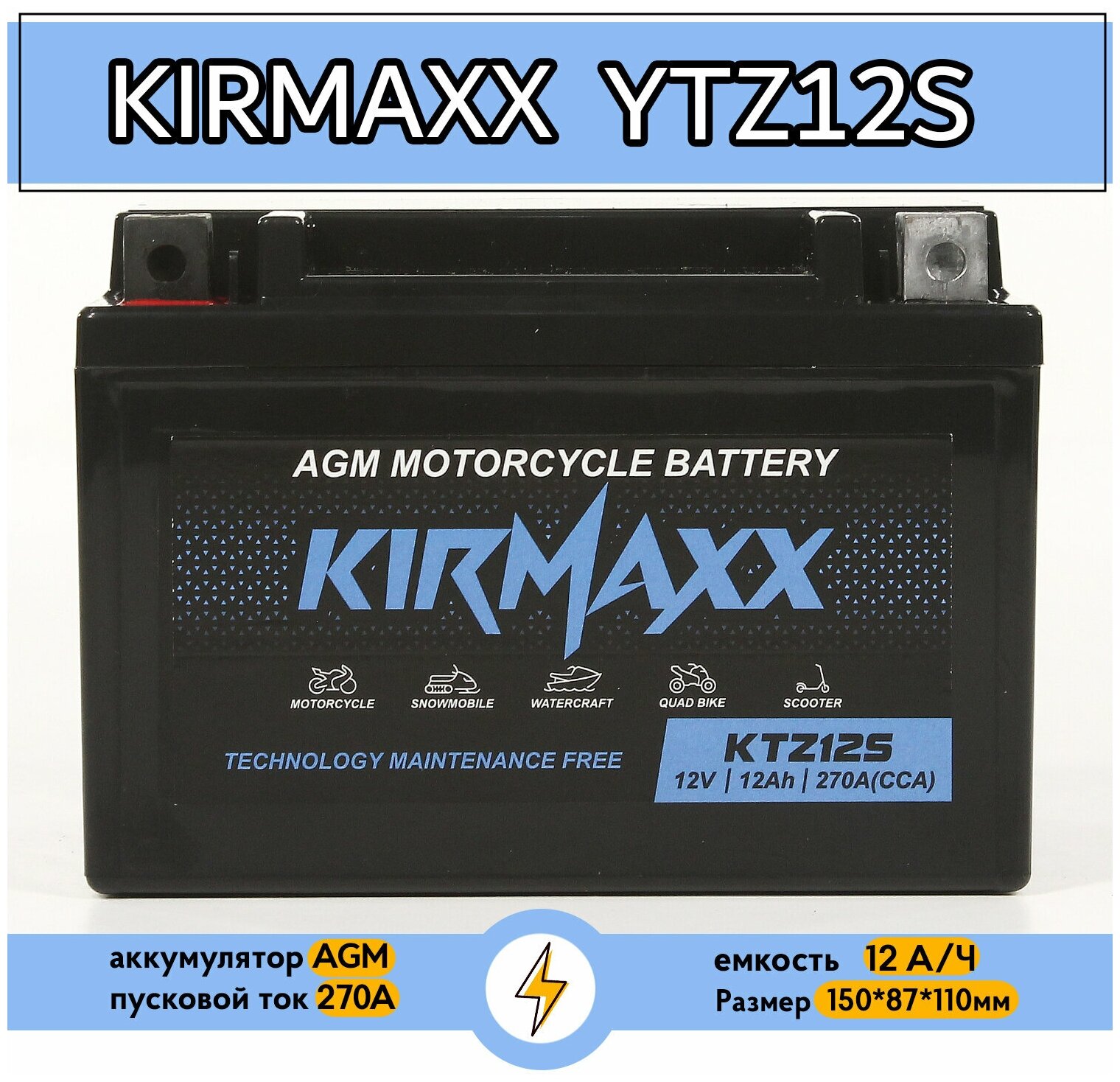 Мото аккумулятор KirMaxx KTZ12S (YTZ12S) стартерный для мотоцикла, квадроцикла, скутера AGM 12V 11 а/ч информация: