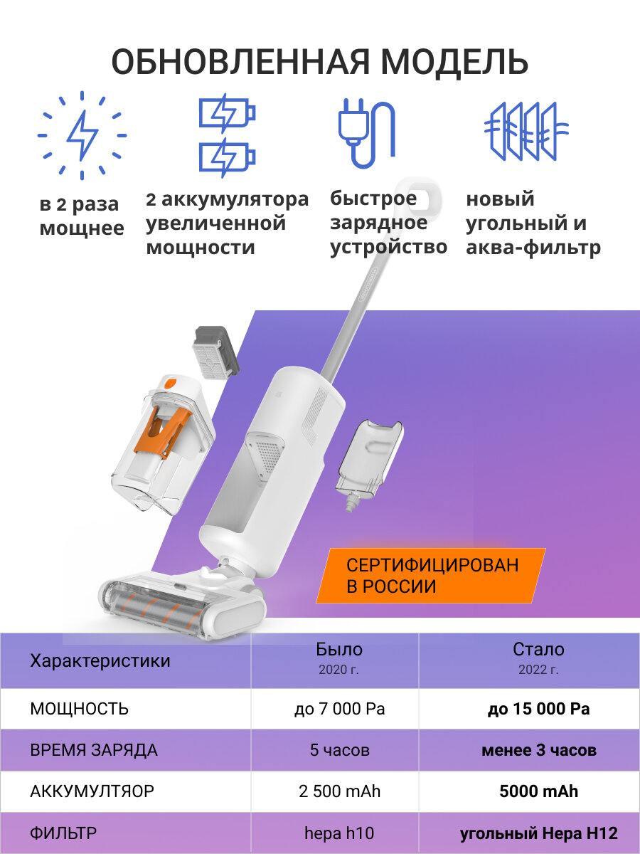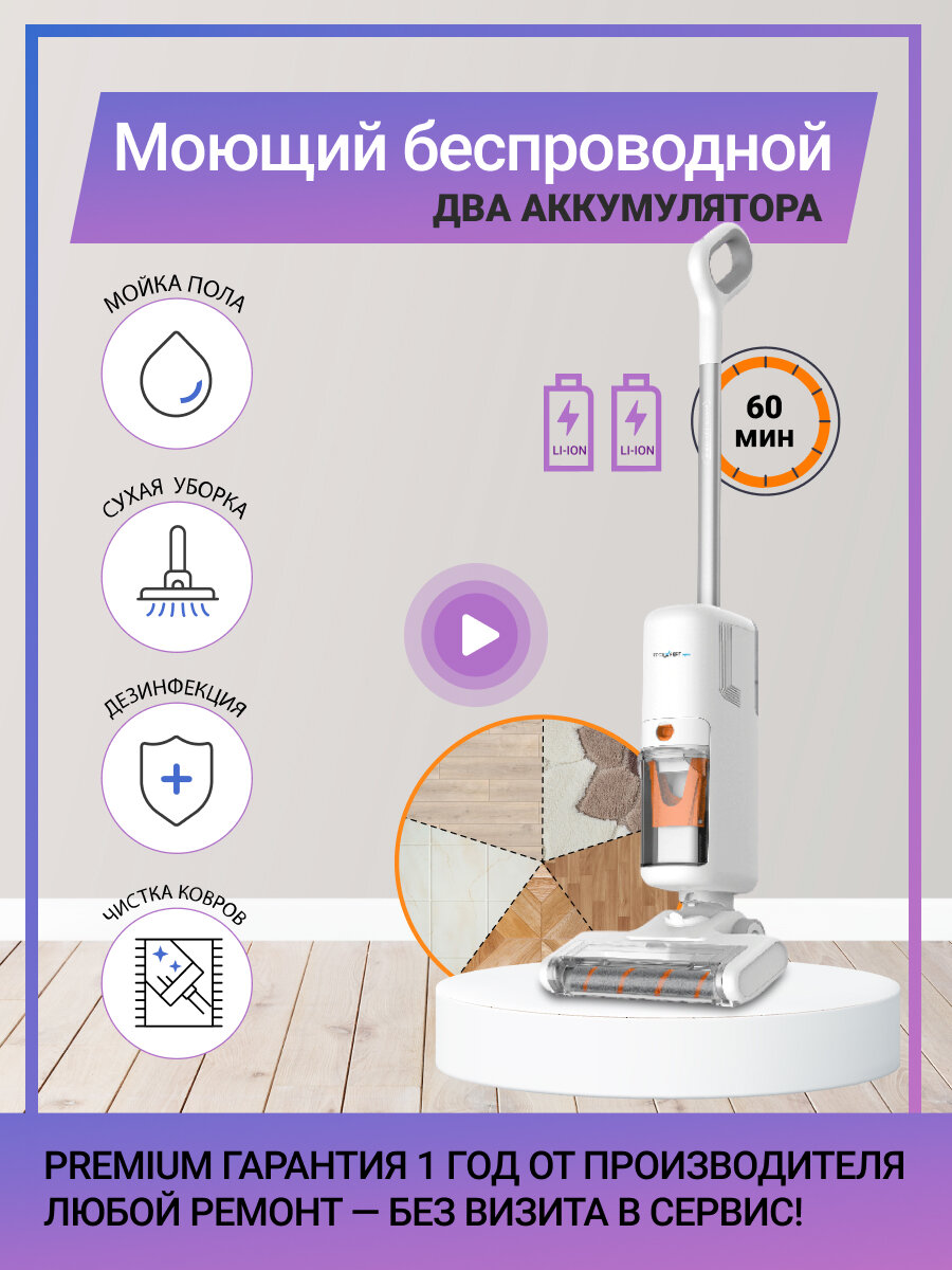Моющий беспроводной пылесос для дома AQUA V2 PLUS, сухая уборка и мойка пола, 2 аккумулятора в комплекте информация: