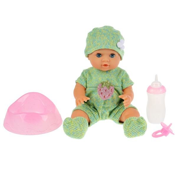 | Комплектация | пупс, соска, горшок, бутылочка, свидетельство о рождении |