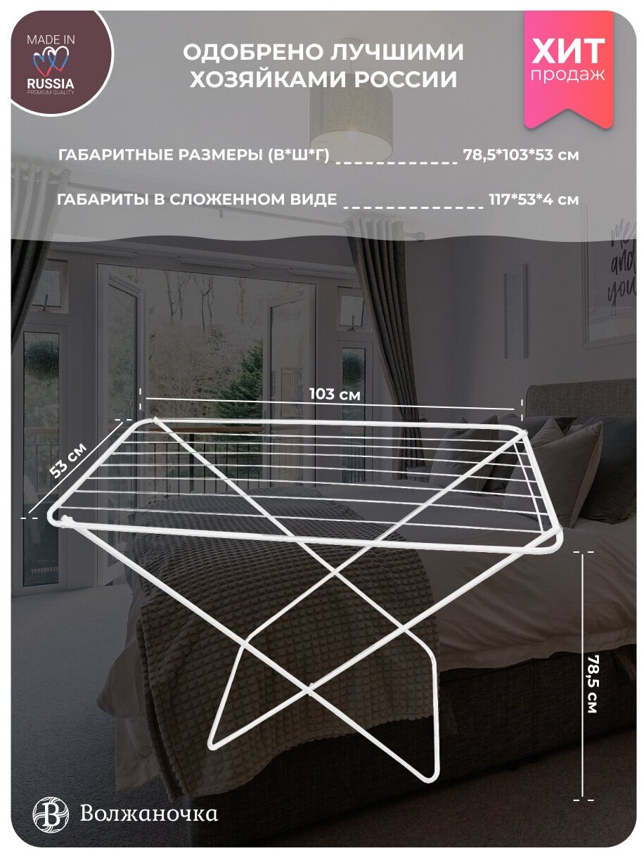 Сушилка для белья "Сказка" складная напольная, белый, 103х53 см информация:
