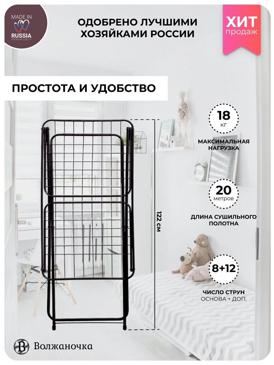 Сушилка для белья "ELIT"складная напольная, черный агат, 175х53 см информация: