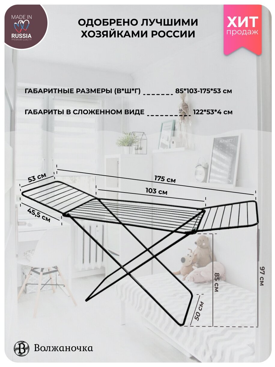 Отзывы на Сушилка для белья "ELIT"складная напольная, черный агат, 175х53 см