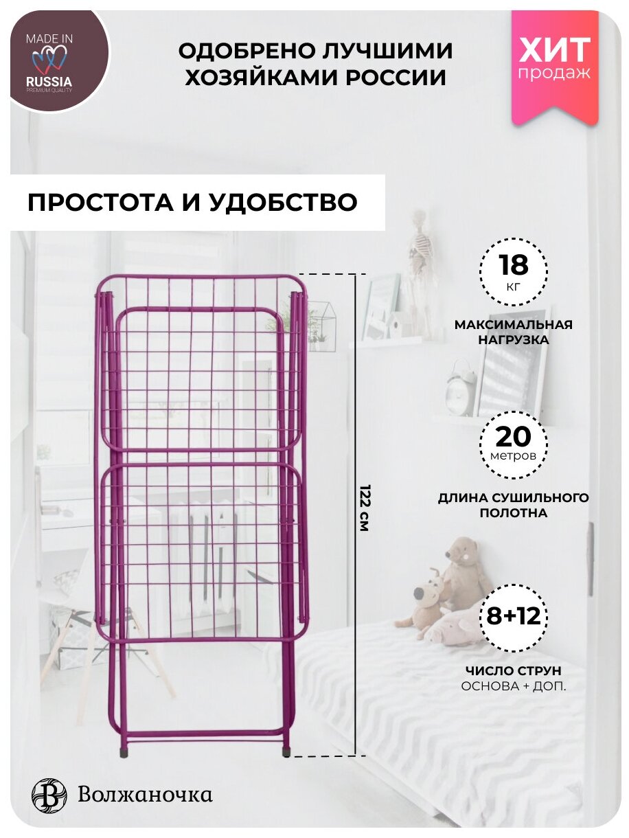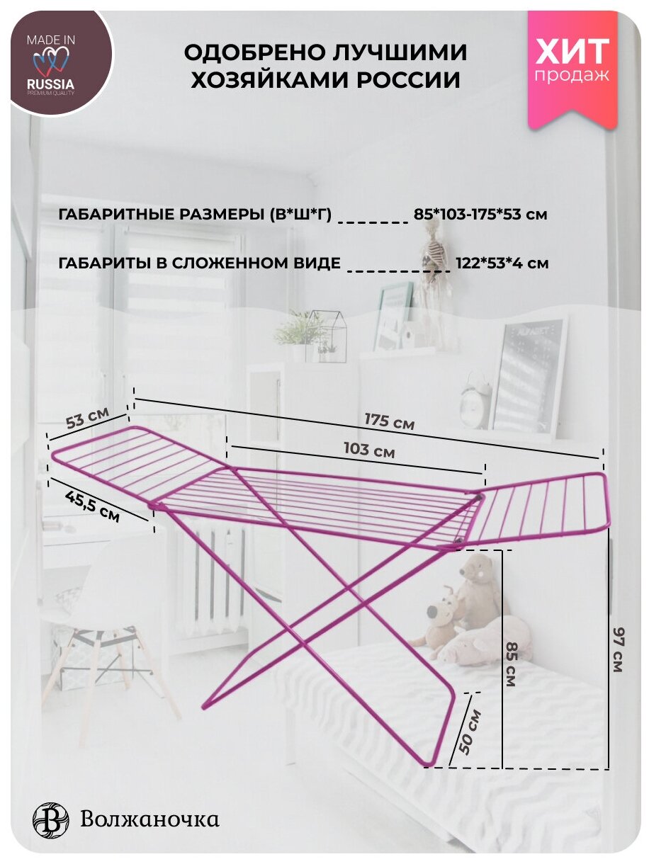 Сушилка для белья "ELIT" складная напольная, лаванда, 175х53 см информация: