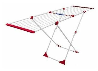 | Дополнительная информация | Суммарная длина сушильного полотна: 20 м Диаметр трубы: 18 мм Толщина прутьев: 3,5 мм Габаритные размеры в сложенном состоянии: 128x55x5 см Максимальная нагрузка: 15 кг |