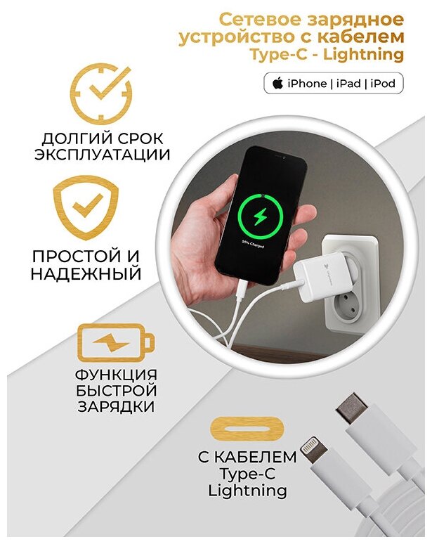 | Подробная комплектация | адаптер сетевой заряки, кабель Type-C/Lightning, инструкция по эксплуатации |