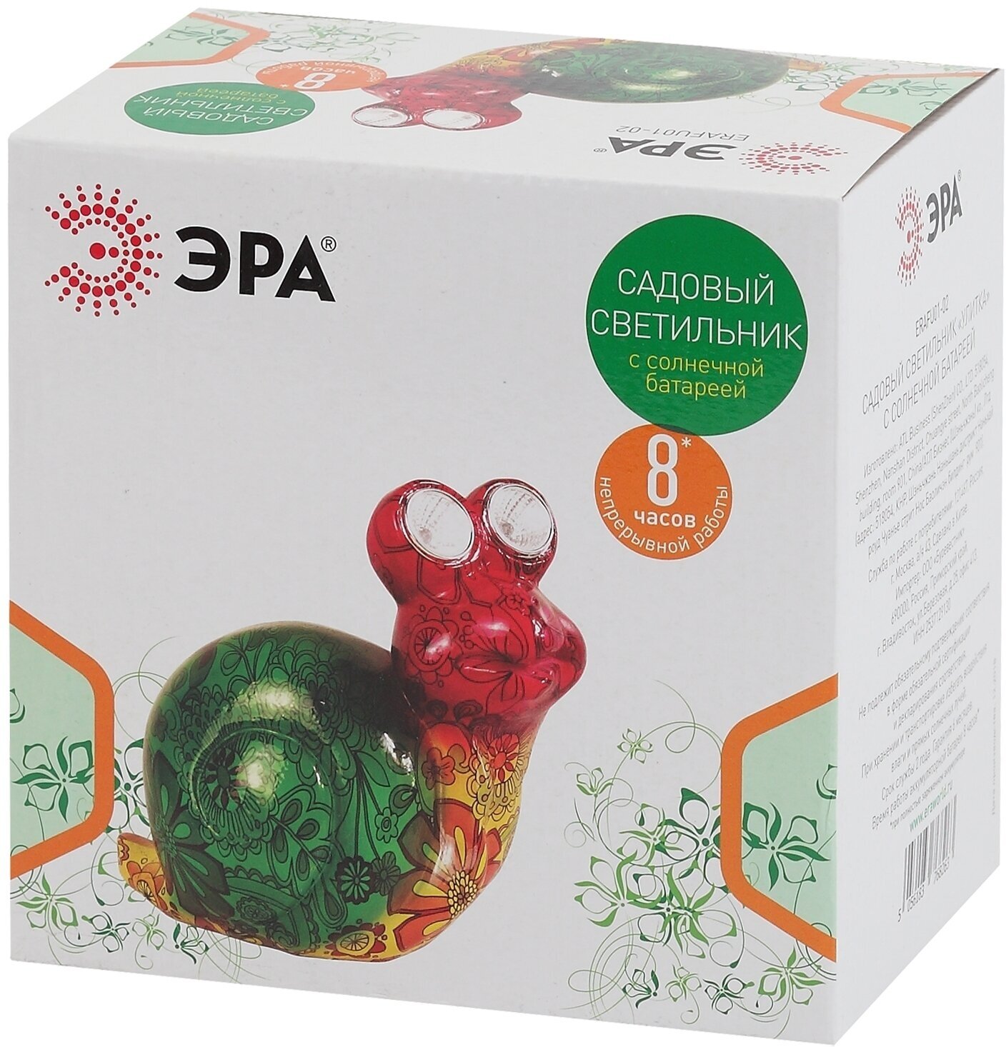 ЭРА ERAFU01-02 ЭРА Садовый светильник Улитка на солнечной батарее, полистоун, 14 см (24/144) информация: