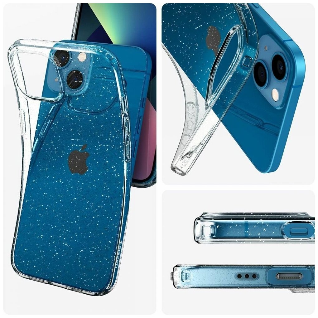 Чехол Spigen на Apple iPhone 13 (ACS03516) Liquid Crystal Glitter / Спиген чехол для Айфон 13 силиконовый, противоударный, с защитой камеры, блестки