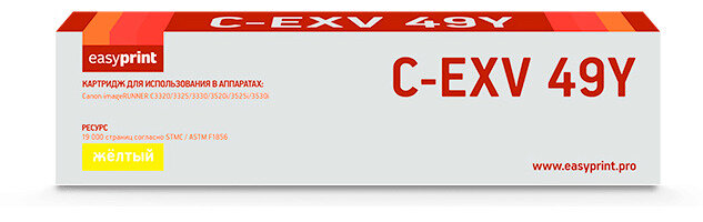 Лазерный картридж EasyPrint LC-EXV49Y для принтеров Canon imageRUNNER ADVANCE C3320i/ C3325i/ C3330i/ C3520i/ C3525i/ C3530i, желтый, 19000 страниц информация: