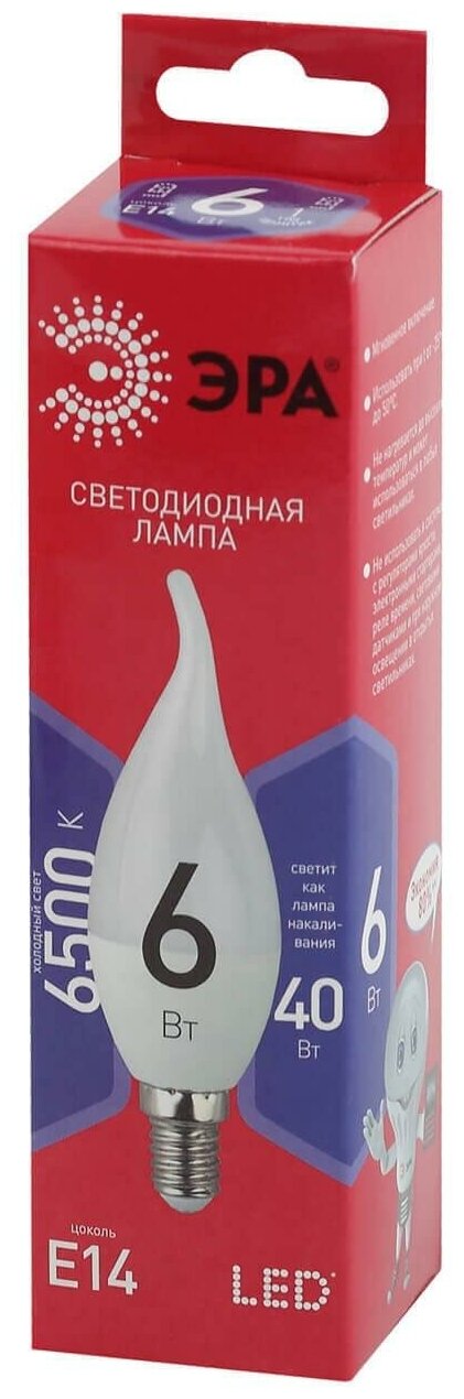Отзывы на Светодиодная лампа ЭРА LED BXS6W865E14 R, свеча на ветру, 6Вт, холодный, E14 Б0045344