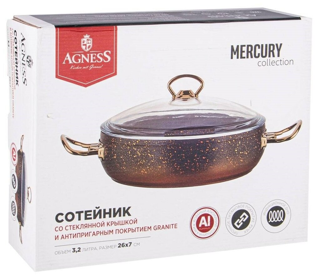 Сотейник Agness "MERCURY", 4, 0 л., PFOA FREE Agness 953-007 информация:
