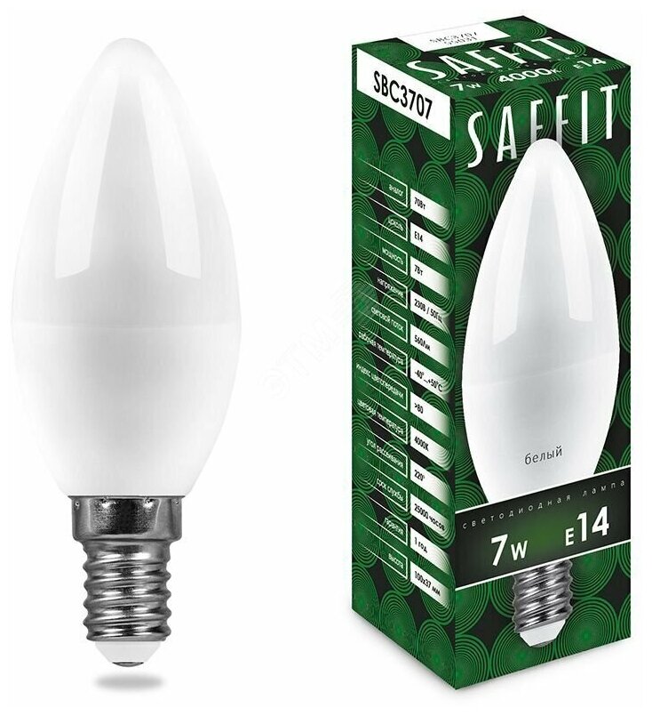 Лампочка светодиодная Saffit 7W=70W 230V E14 Свеча C37 560Лм Ra>80 4000К, упаковка 10шт. информация: