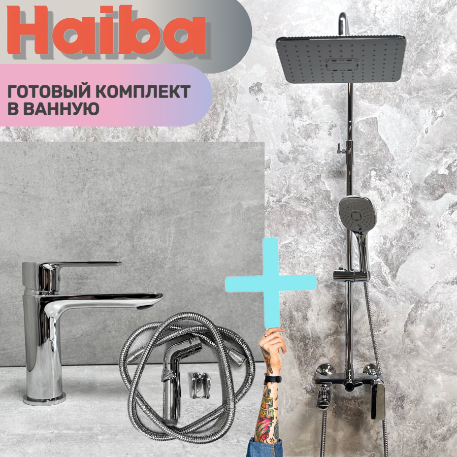 Отзывы на Душевая система и Смеситель для раковины с гигиенической лейкой HAIBA HB24505-HB12505, материал латунь, покрытие хром.