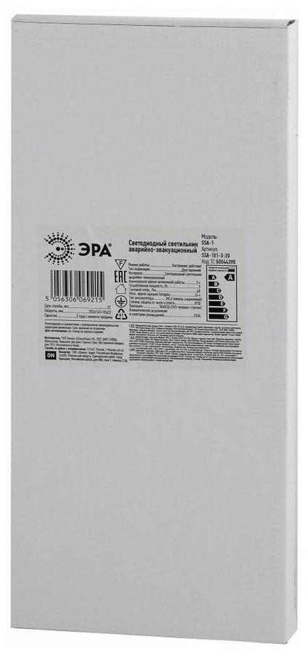 Отзывы на ЭРА SSA-101-3-20 ЭРА Светильник аварийный светодиодный 1,5ч 3Вт ВЫХОД-EXIT-ЧЕЛ-стрелка (20/480)
