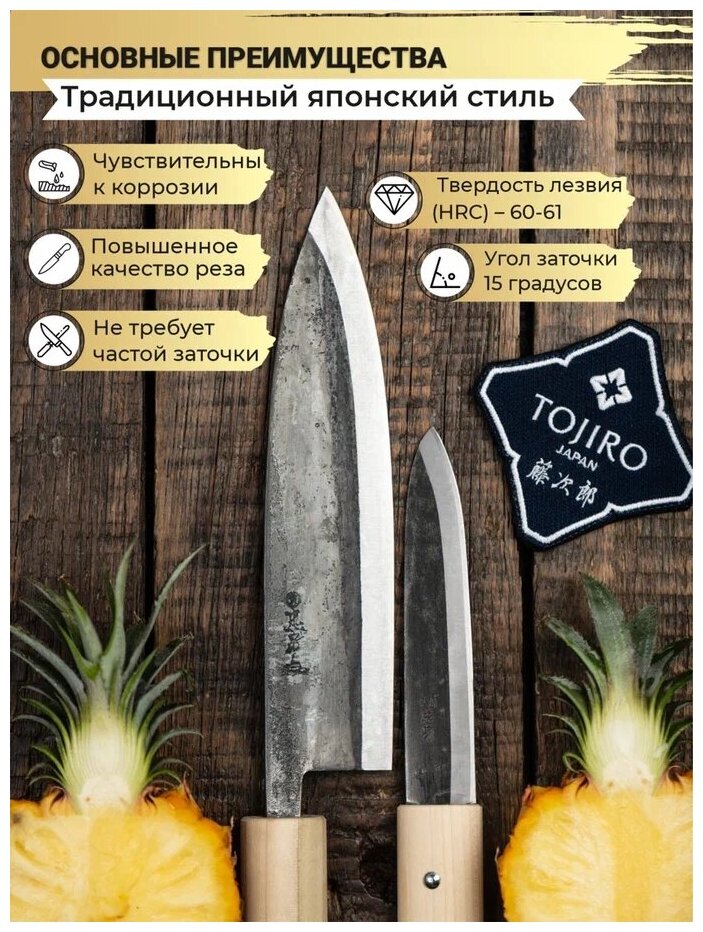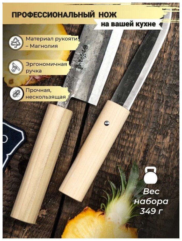 | Комплектация | Кухонный нож в традиционном японском стиле Kaibocho. Традиционный японский нож Makiri |