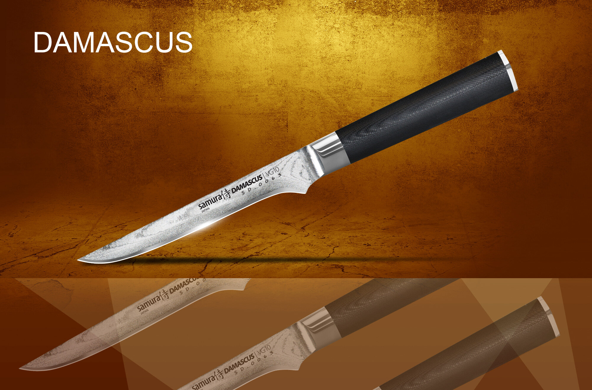 Отзывы на SD-0250КРЧП набор из 5-ТИ кухонных ножей SAMURA DAMASCUS универсальный, слайсер, обвалочный, ШЕФ, сантоку, подставки из пластика
