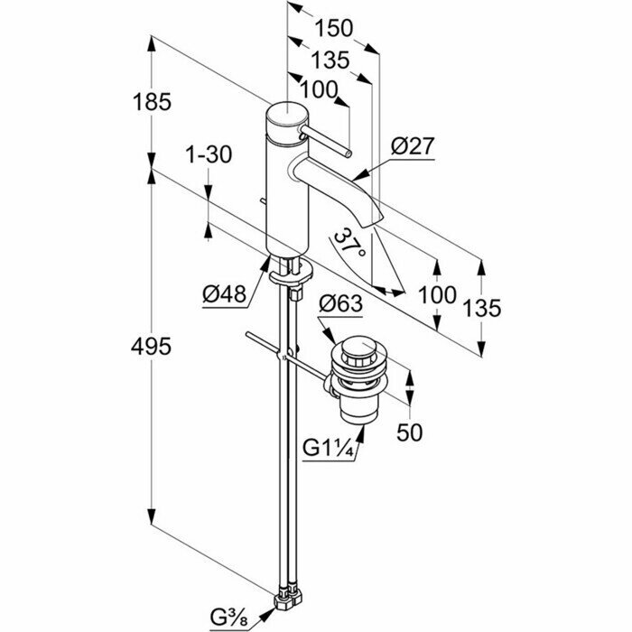 Смеситель Kludi Bozz 382800576 для раковины с донным клапаном 24 100 ₽