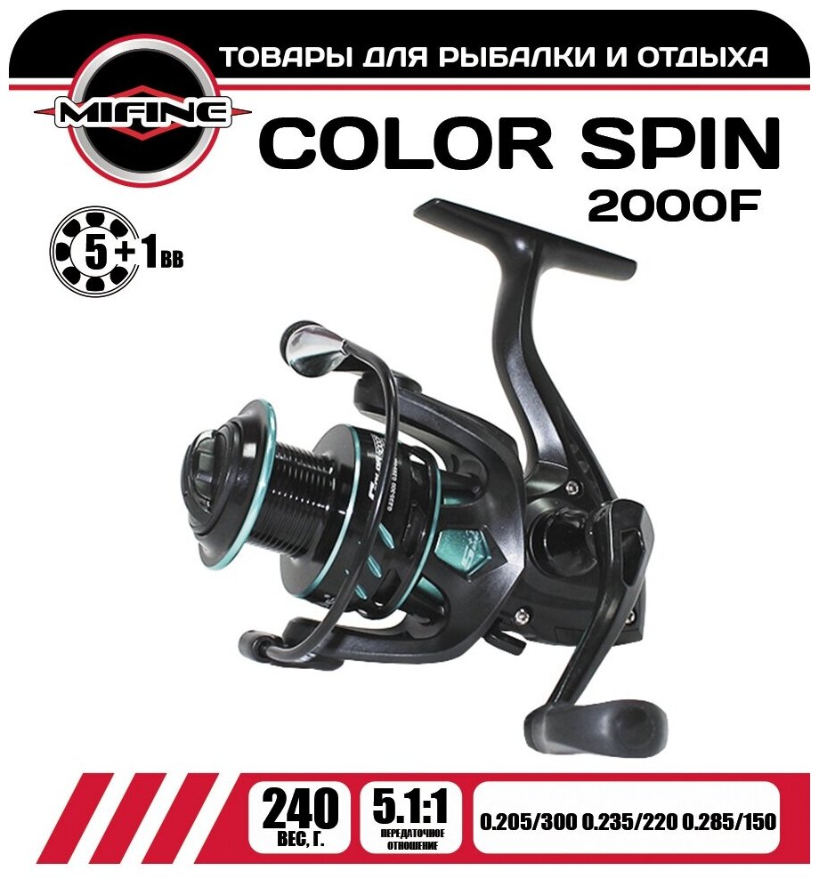 Катушка рыболовная MIFINE COLOR SPIN 2000F, 5+1 подшипник , для спиннинга, для фидерной ловли, с металлической шпулей информация:
