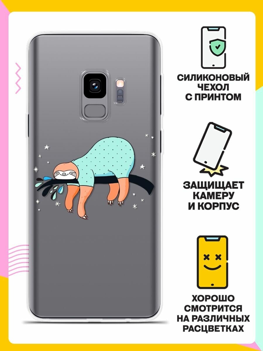 Силиконовый чехол на Samsung Galaxy S9 Ленивец спит / для Самсунг Галакси С9 информация: