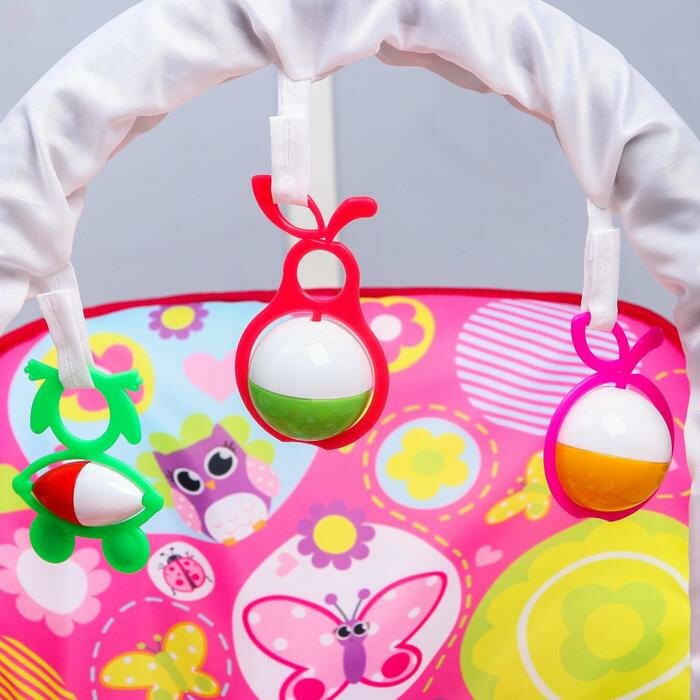 Шезлонг-качалка для новорождённых «Цветы», игровая дуга, съёмные игрушки микс информация: