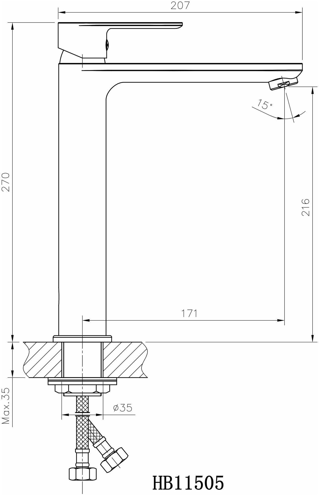 Смеситель для умывальника 35к HB11505 HAIBA б/отв, высокий, п/шпильку информация: