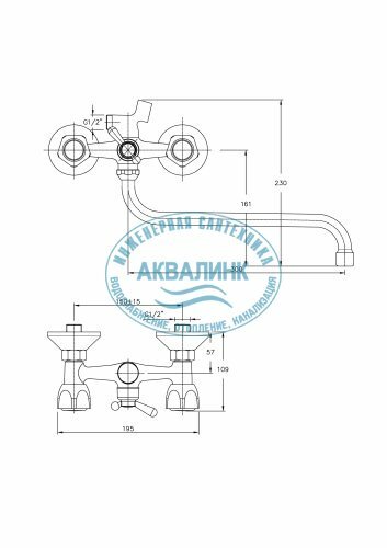 Смеситель на раковину настенный Эверест B46-350 с круглым поворотным изливом, кран-буксы 1/2", хром