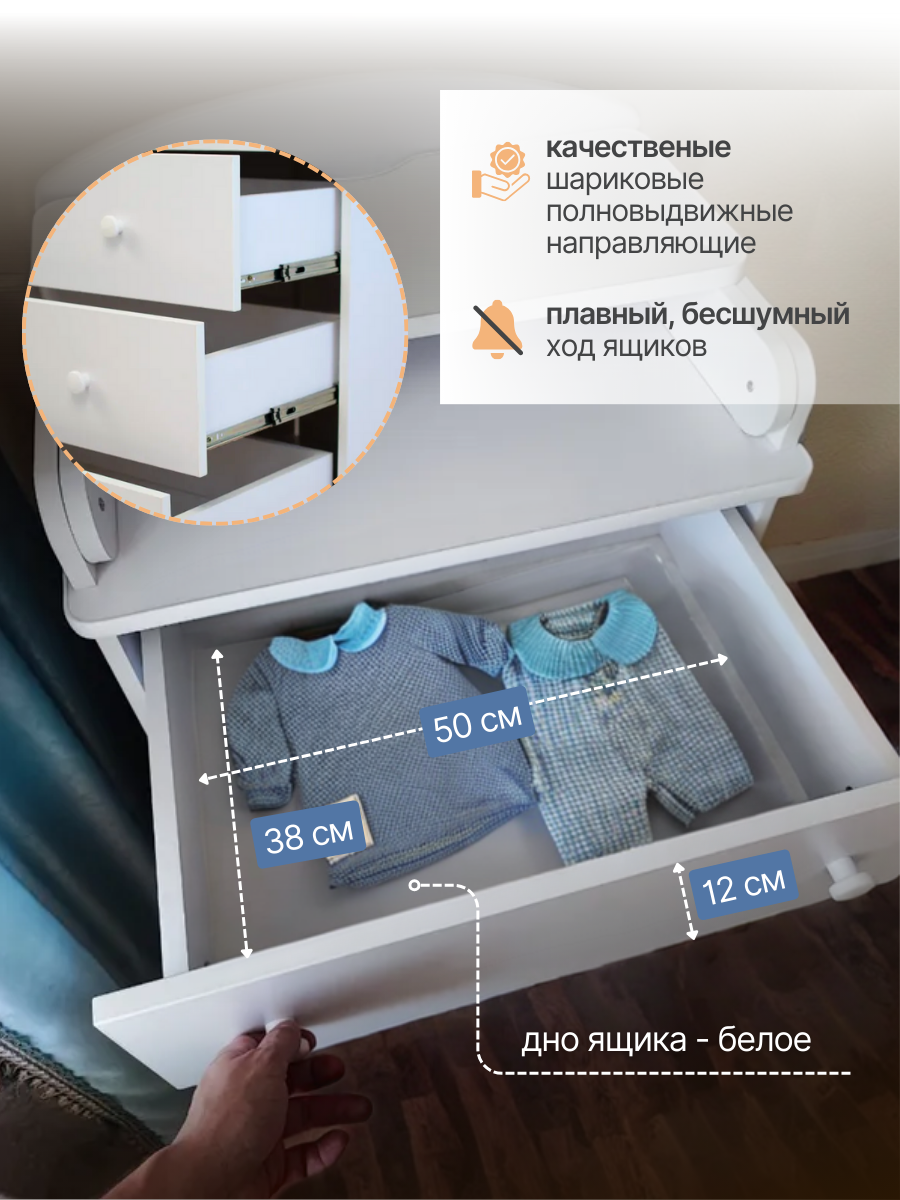 Комод детский пеленальный 60*47*100 см с откидным столиком Florenzzo Азбука Кроваток, белый, 4 ящика информация: