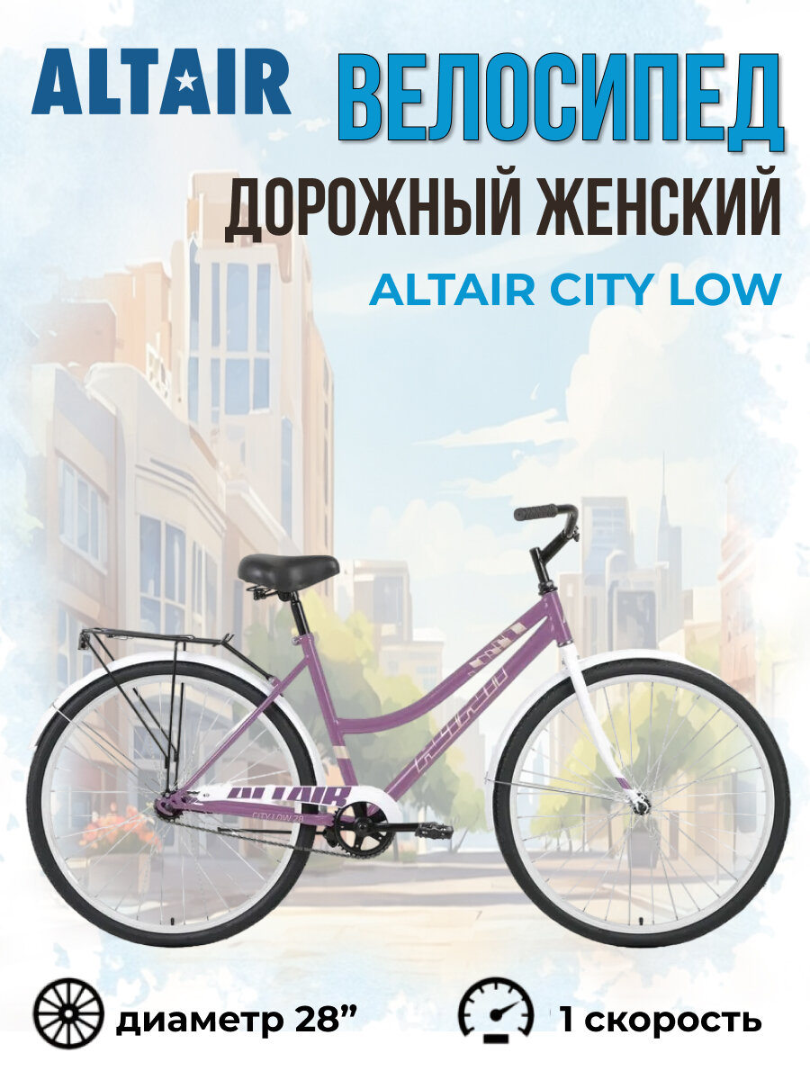 Отзывы на Дорожный велосипед с колесами 28" Altair City Low 1 скорость рама 19" фиолетовый/белый 21-22 год