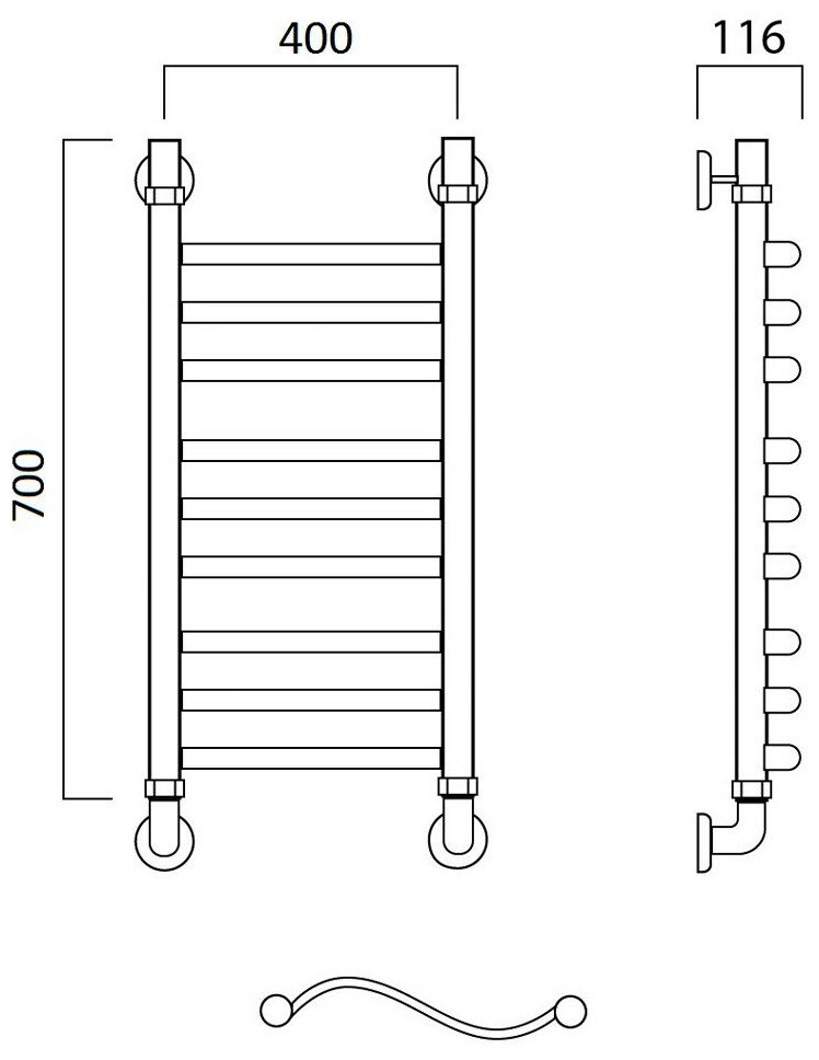 Водяной полотенцесушитель Роснерж Скоба L102001 120x40 с боковым подключением 800