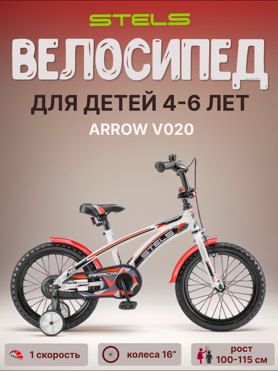10 цен на Велосипед Stels 16' Arrow V020 (LU085302), Белый/Красный