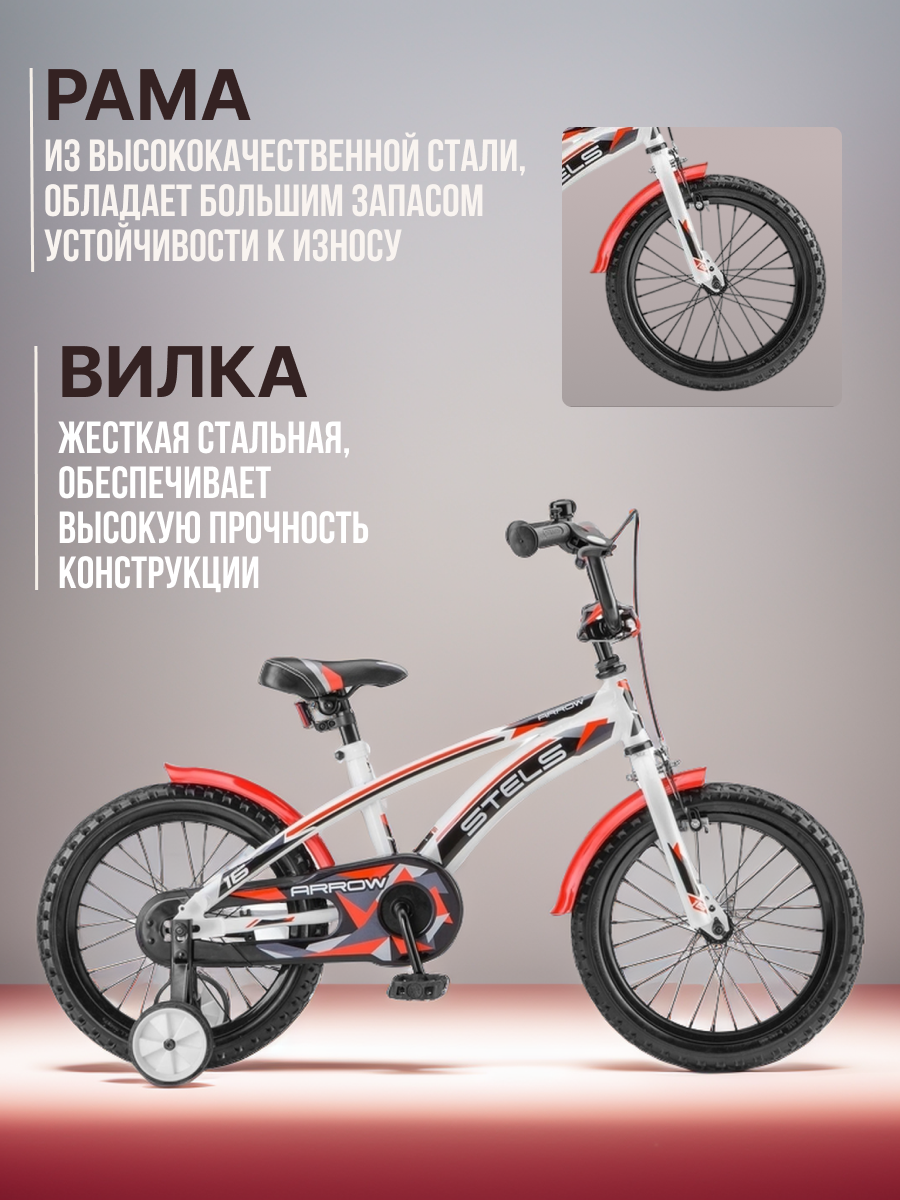 Велосипед Stels 16' Arrow V020 (LU085302), Белый/Красный информация: