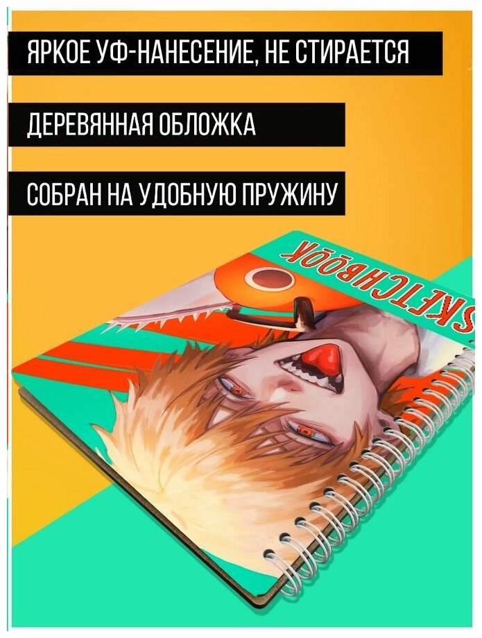 Скетчбук Блокнот, A5 50 листов с деревянной обложкой аниме Chainsaw Man- 3122 информация:
