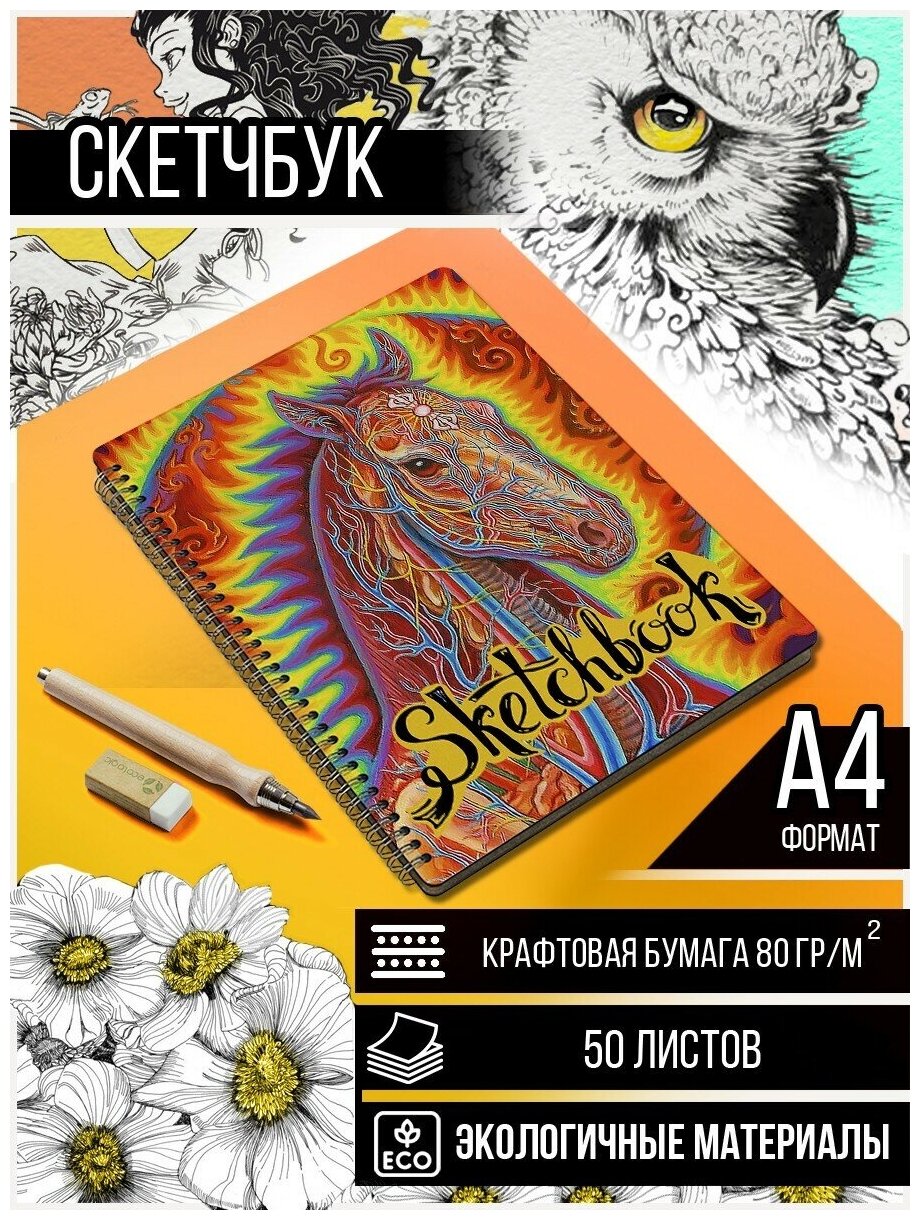 Скетчбук, Блокнот, A4 50 крафт листов эзотерика космос лошадь - 207 информация: