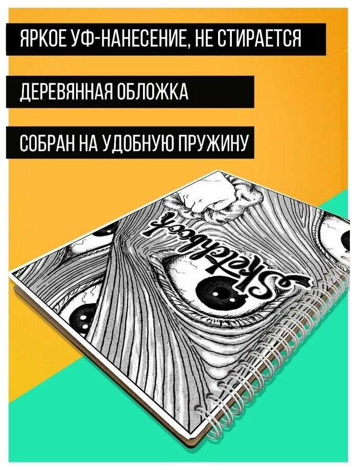 Скетчбук Блокнот, A5 50 листов с деревянной обложкой манга психоделика - 335 информация: