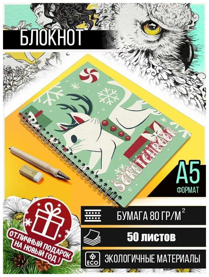 10 цен на Скетчбук, Блокнот для рисования A5 50 листов праздники - 5126