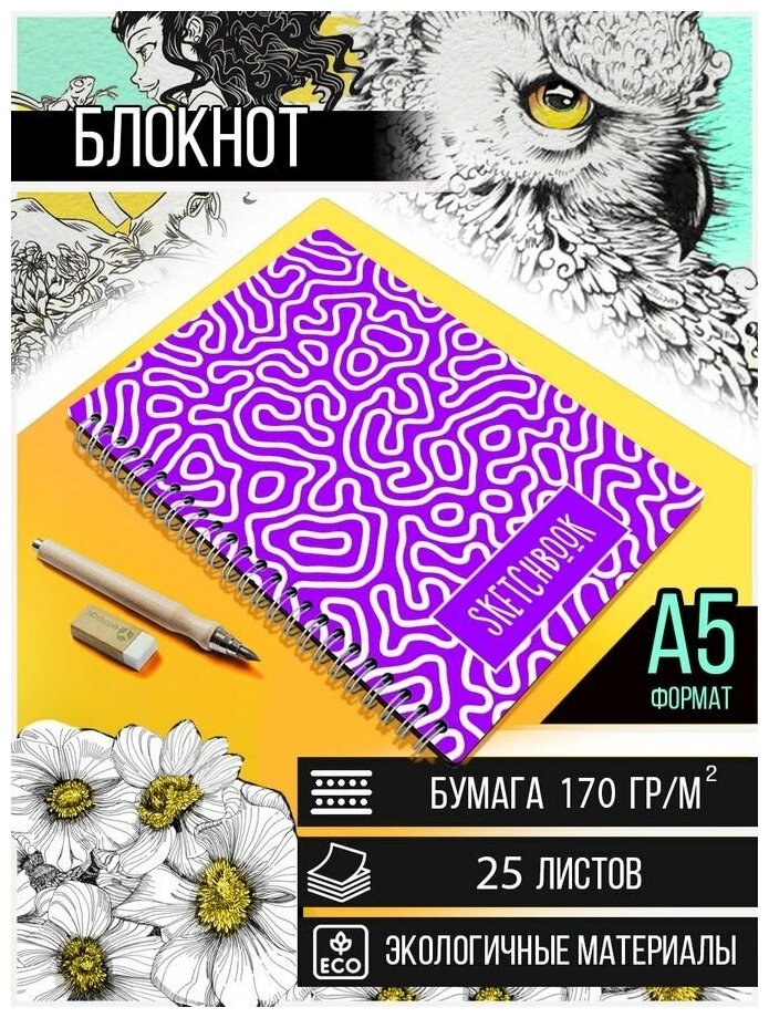 10 цен на Скетчбук, Блокнот, A5 25 листов 170гр/м2 астракция Принт - 3093
