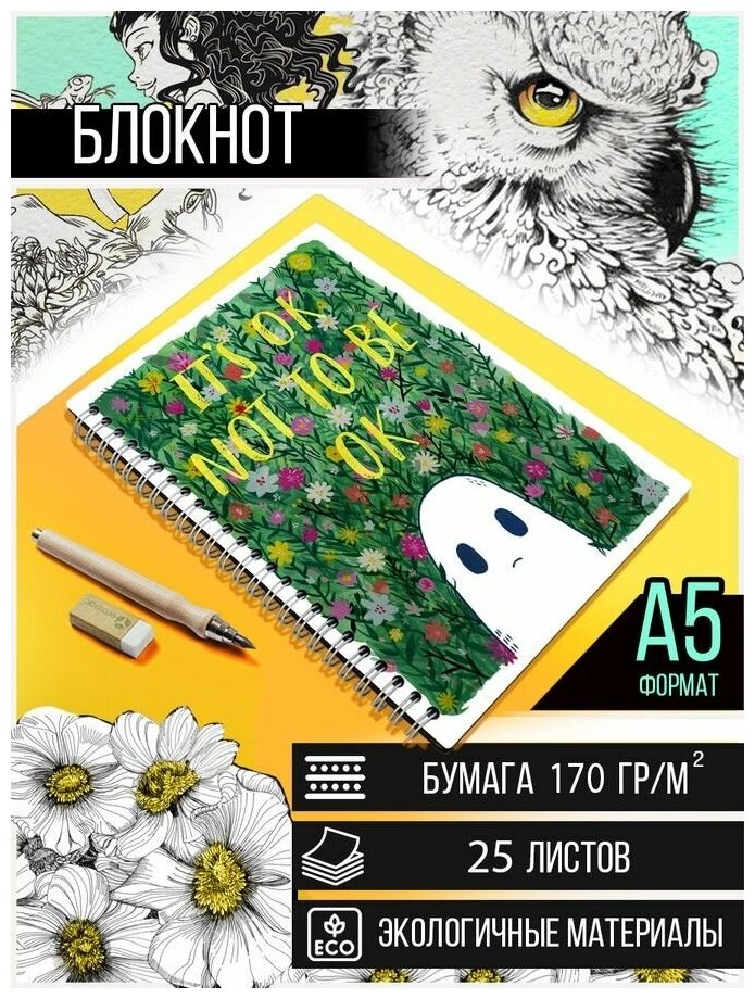 10 цен на Скетчбук, Блокнот, A5 25 листов 170гр/м2 эстетика - 1094