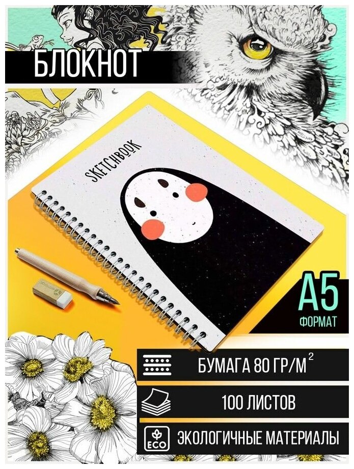10 цен на Скетчбук, Блокнот, A5 50 листов аниме Безликий - 3098