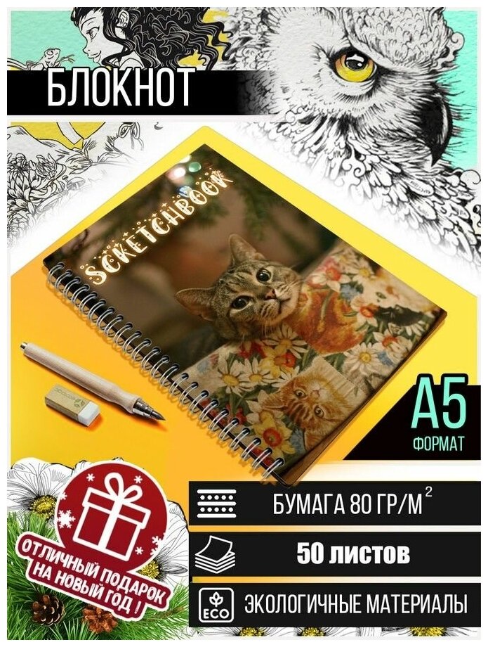 10 цен на Скетчбук, Блокнот, A5 50 листов праздники - 5144