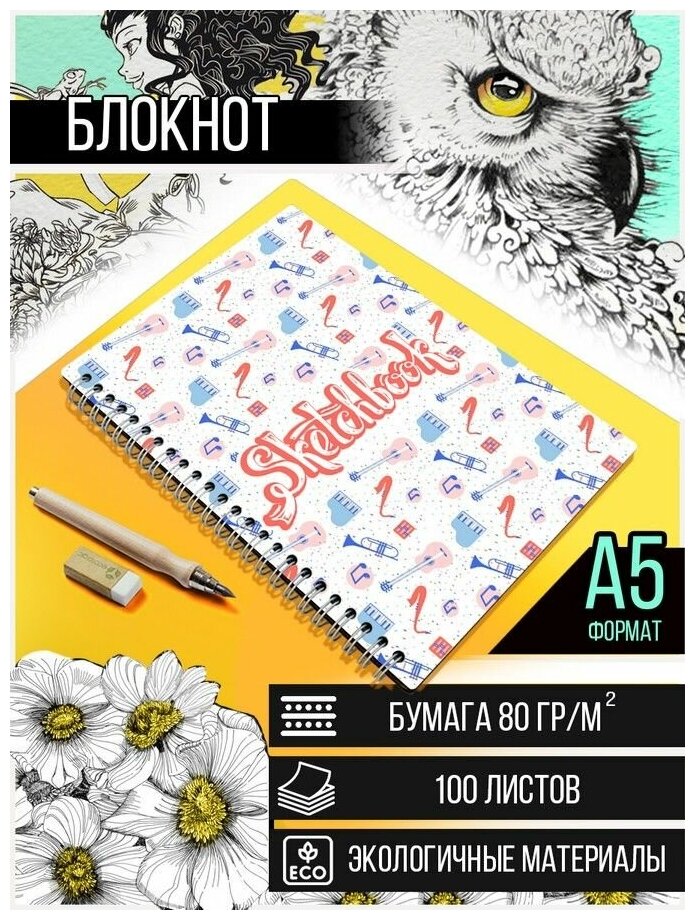 10 цен на Скетчбук, Блокнот, A5 50 листов музыка - 323