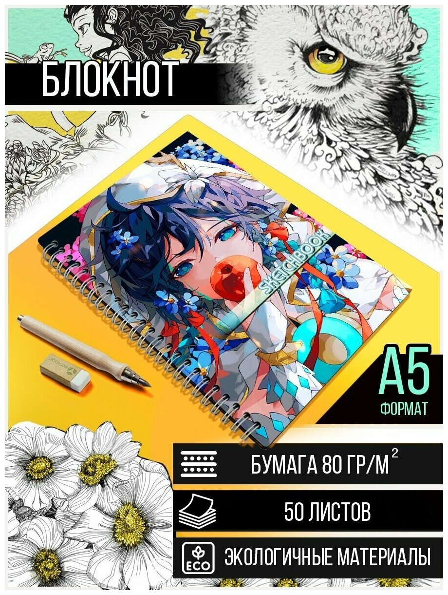 Скетчбук, Блокнот, A5 50 листов Игра Genshin Impactенти - 97 информация: