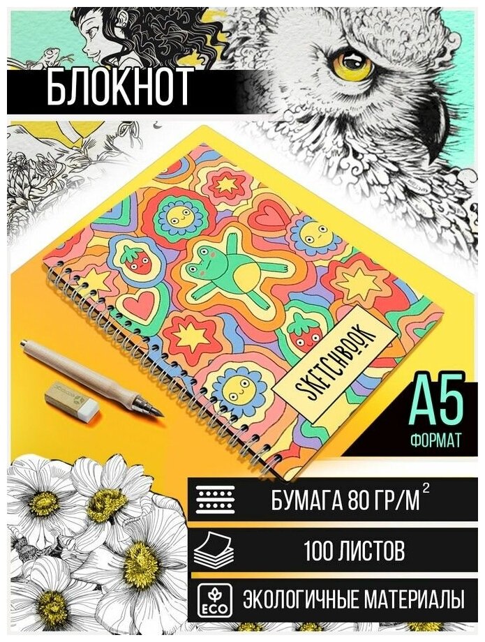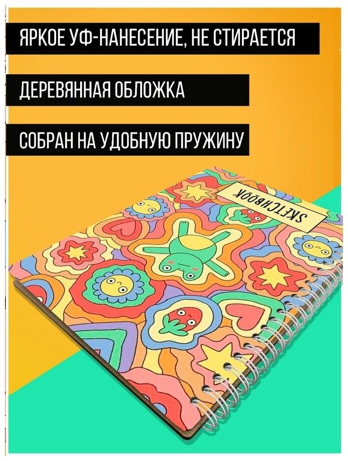 10 цен на Скетчбук Блокнот, A5 50 листов с деревянной обложкой принт Графика (милота, подростки) - 3107