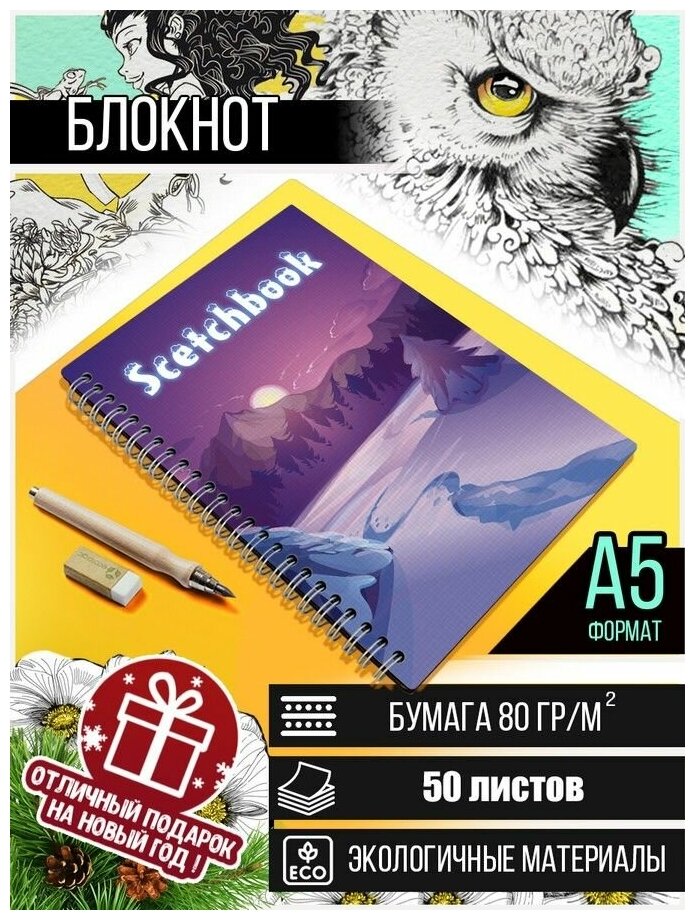 10 цен на Скетчбук, Блокнот для рисования A5 50 листов праздники - 5030