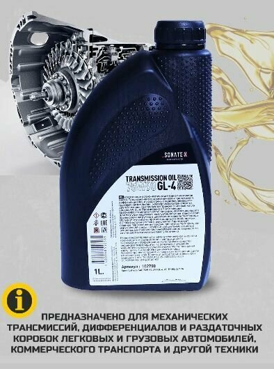 Масло трансмиссионное Sonatex 75W90 GL-4 полусинтетическое 1 литр информация:
