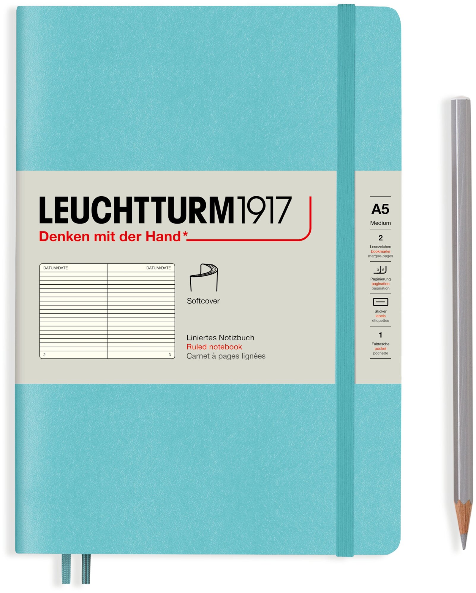 Блокнот Leuchtturm Rising Colours A5 61л в линейку мягкая обложка Аквамарин информация:
