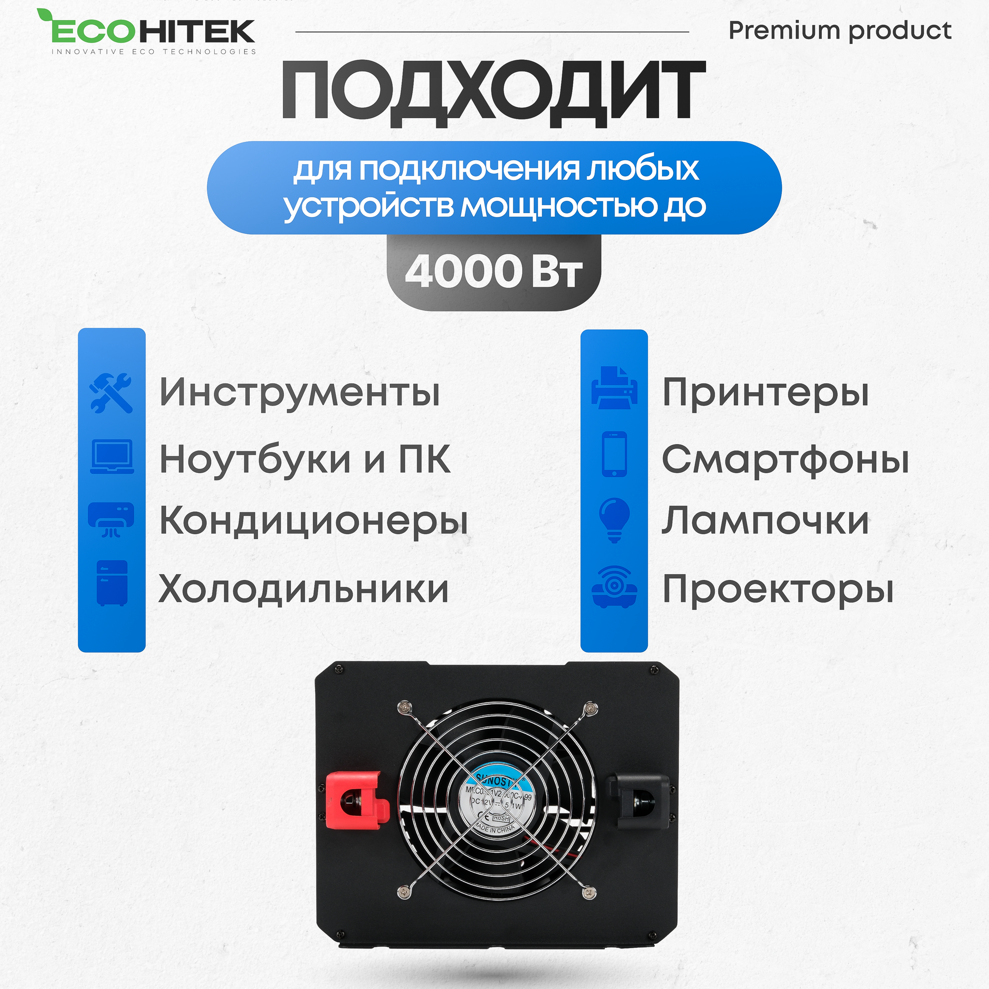 10 цен на Power Inverter 8000 EcoHitek Автомобильный инвертор напряжения 12 - 220В (пост нагрузка до 4000 Вт). Подключение приборов, эл. инструмента.